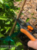 Step 3: I'll go back and cut the bamboo stakes to conceal them as well. Look! You can see the pollen dust on the shears!